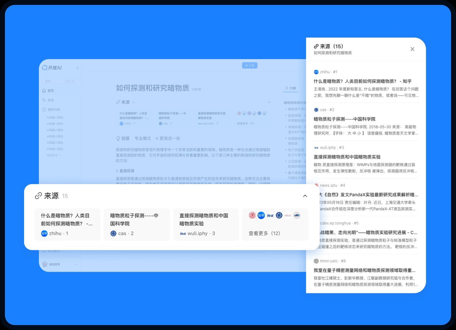 无论你是查资料/学知识/做研究,开搜AI都能全面满足你各种场景下的复杂需求,让你体验AI带来的效率提升