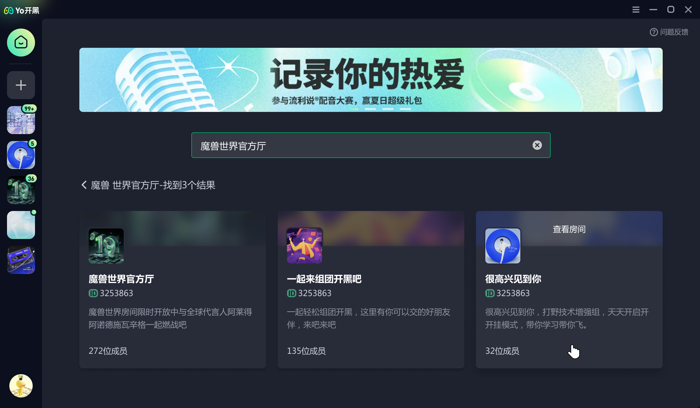 Yo开黑是一款稳定、免费、绿色的游戏开黑语音聊天工具,你可以尽情在这里聊天、找队友和探索内容~