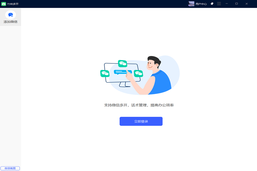 竹林多开是一款简单易用的微信双开、微信多开软件,是用于电脑PC版的微信多开工具,可以同时登录多个微信号,统一窗口管理。微信消息提醒让管理更加便捷,有效提升办公及沟通效率。 同时具备话术管理功能,实现快速回复,减少重复打字,大大节省时间。 五大核心功能: 1)无限多开 2)批量登录 3)窗口集成 4)5台电脑 5)话术管理