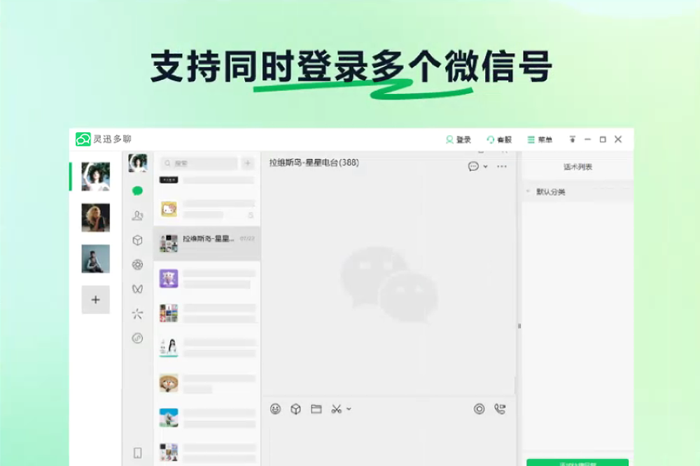 灵迅多聊-分身多开是一款专为微信用户设计的PC多开软件,旨在帮助用户在同一台设备上同时运行多个微信账号,同步支持安卓手机。兼容微信4.1版本。无论是需要同时管理多个工作号和个人号,还是需要处理多个业务账户,微信多开神器都能为您提供便捷高效的解决方案,主要功能: 灵迅多聊-分身多开是一款简单、易用的微信分身工具,适用于有多个微信账号的人群,可以极大提升沟通效率。