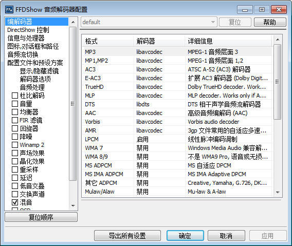 全能的解码、编码器。初ffdshow只是mpeg视频解码器,不过现在他能做到的远不止于此。它能够解码的视频格式已经远远超出了mepg4的范围,包括indeo video,WMV,mpeg2等等。ffdshow并不是单独的播放器,它只是一个媒体播放器的插件程序,需要跟其它第三方播放器配合使用,安装之后,一般用户无需进行设置,其他播放工具在解码对应格式的时候会自动启用它来工作。