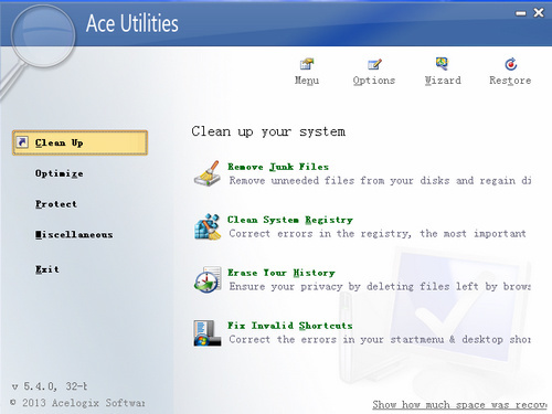 Ace Utilities是一个小巧而又功能强大,可以清理系统垃圾的工具。大家都有这个体会:当你的Windows使用久了, 你的计算机中就会累积大量的垃圾,使你的系统变得很慢。这些垃圾包括不必要的文件,坏掉的快捷方式 , 多余的副本文件 , 系统注册表的死项目 , 历史记录信息等。正是这些垃圾文件严重的影响了系统的性能。但是如果自己去手工修改的,不但很繁琐,而且一旦出错就可能系统崩溃、难以修复了。现在有了Ace Utilities,这些事情可以轻松搞定。