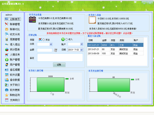 会生活家庭记账本(原蓝梦家庭记账本)是一款功能强大,简单,实用,易用,没有任何多余功能的家庭记账软件。她可以帮您轻松记录每天的收入、支出,并进行分析,汇总,让您更容易对收入和支出进行预算!使用会生活记账本,钱来钱往一目了然,让您轻松理财不再难! ---- 会赚钱,会花钱,会记账,会生活!