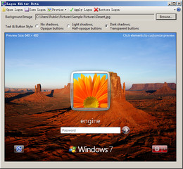 Win7开机登陆界面编辑器,可以设置按钮的透明度和文本的阴影效果等。
