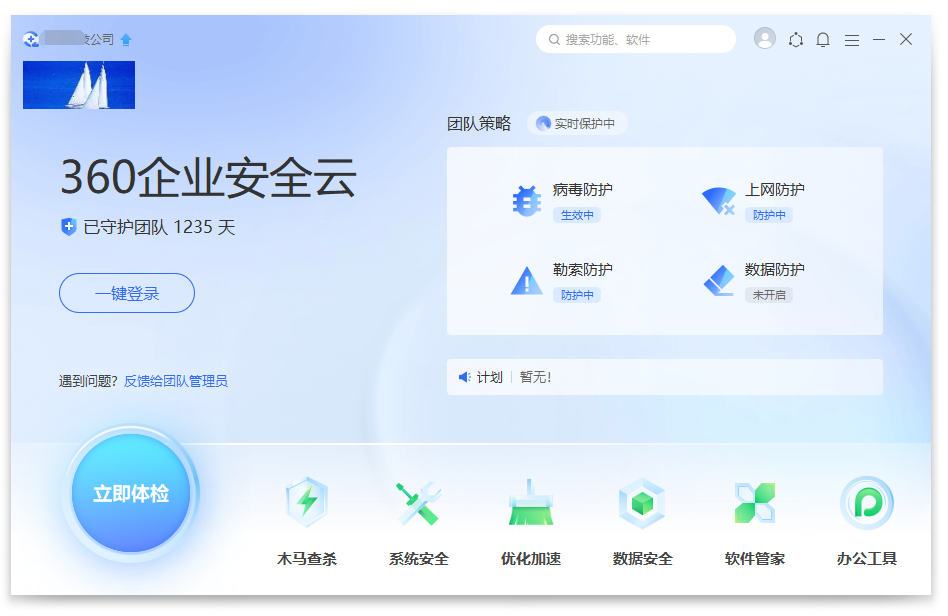 360企业安全云是一款企业级终端安全管理SaaS服务平台,提供终端、网络、软件、数据、资产、防勒索等全方位数字化安全与管理服务,同时具有弹窗拦截、远程控制、云端管理电脑等特色功能。360企业安全云注册简单、部署轻便、操作易上手,快来下载免费体验吧~
