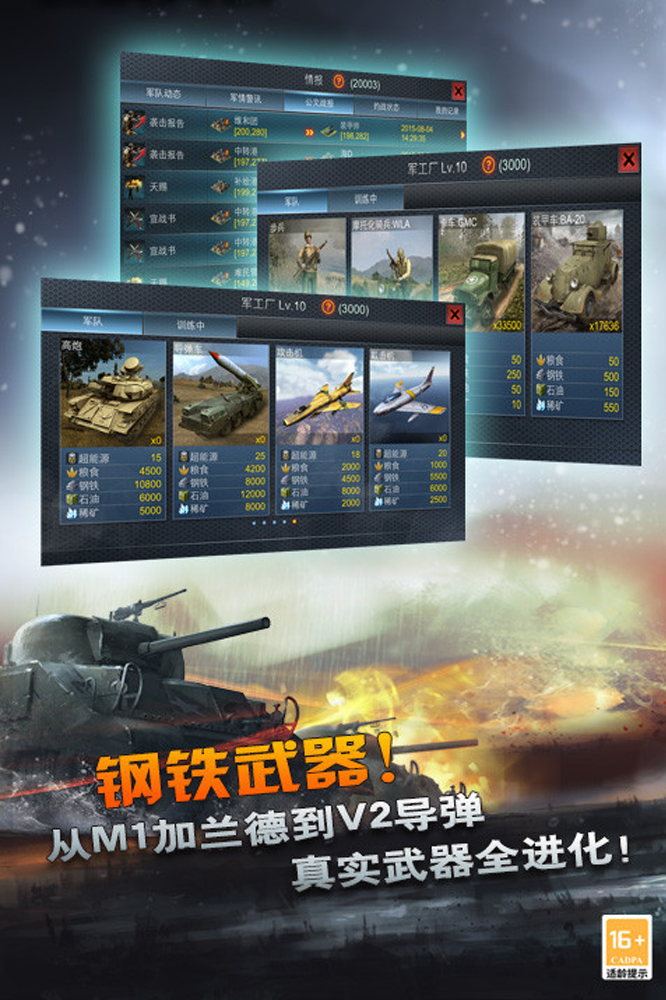 《二战风云》是一款社交战略网游!结合城市建造、资源经营、组建军队、军团养成等一系列玩法,供您尽情施展策略、比拼智谋,打造一个属于您自己的强大帝国!