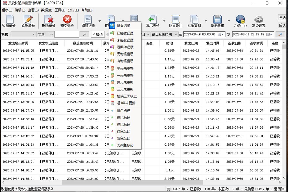 《灵软快递批量查询高手》提供多家快递查询,自动识别快递公司,批量查询快递单号,统一管理快递,支持导出CSV/EXCEL表格、多种筛选方式。表格一目了然,易操作,订单详情独立,非常方便。适合各路电商、微商精英们的使用。软件主要功能:批量查询快递单号、多种导入/导出单号的方法、云数据库同步保存/读取、单号跟踪提醒等。