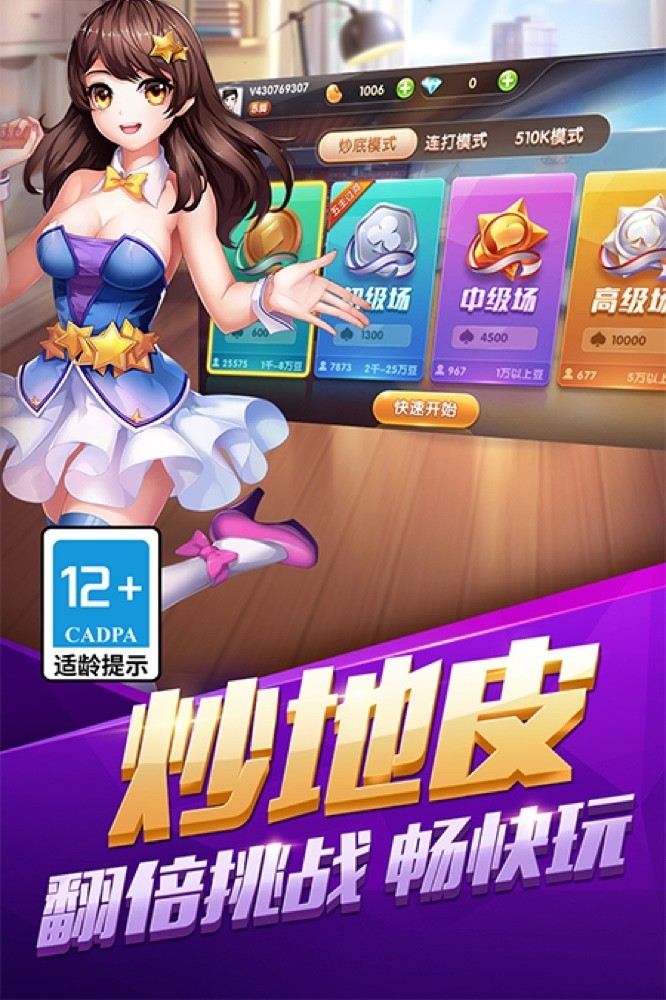 升级是国内非常盛行的一种 4 人扑克牌游戏,也称为“80分(八十分)”、“双升”、 " 拖拉机 "、“炒地皮”、“双扣” 等。《欢乐升级》在原有规则上增加炒地皮玩法,在反主和反底过程中可以不断的翻倍,游戏更加刺激有趣,还包括经典、炒底、五十K、连打、赛事等多种玩法。