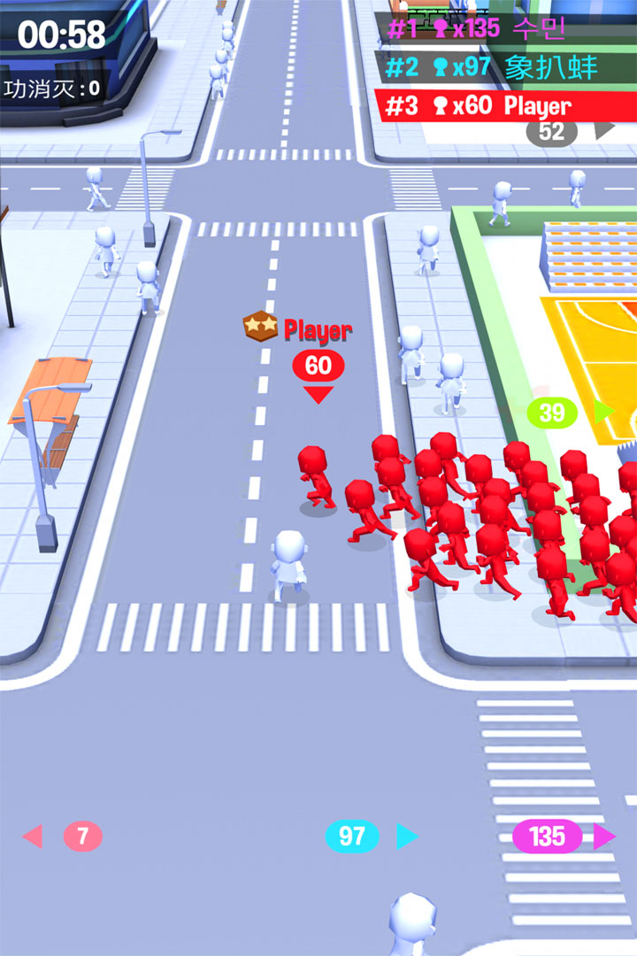 在拥挤城市中召集粉丝,不断吸收其他小团体,壮大自己队伍,组成超强阵容!