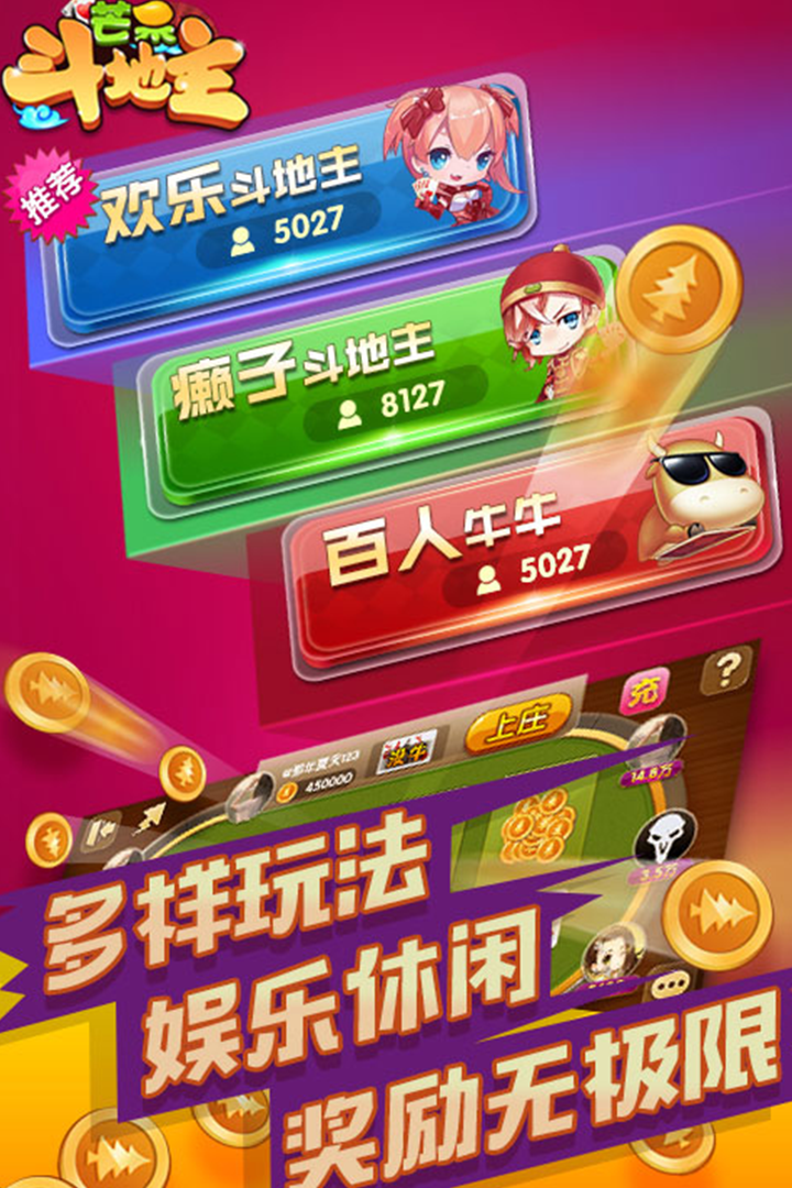 经典玩法+癞子玩法,老少皆宜,全民牌技PK! 叫地主,抢地主,加倍等玩法,精彩不断停不下来!