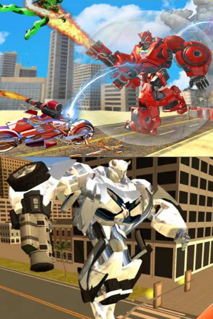 【手机端软件,需要安装游戏助手运行】 这是一款机器人变形射击格斗游戏,消除所有来自城市的恐怖机器人,你将象负责任的警务人员一样,化身为变形机甲金刚、飞机、汽车,钻天入地,