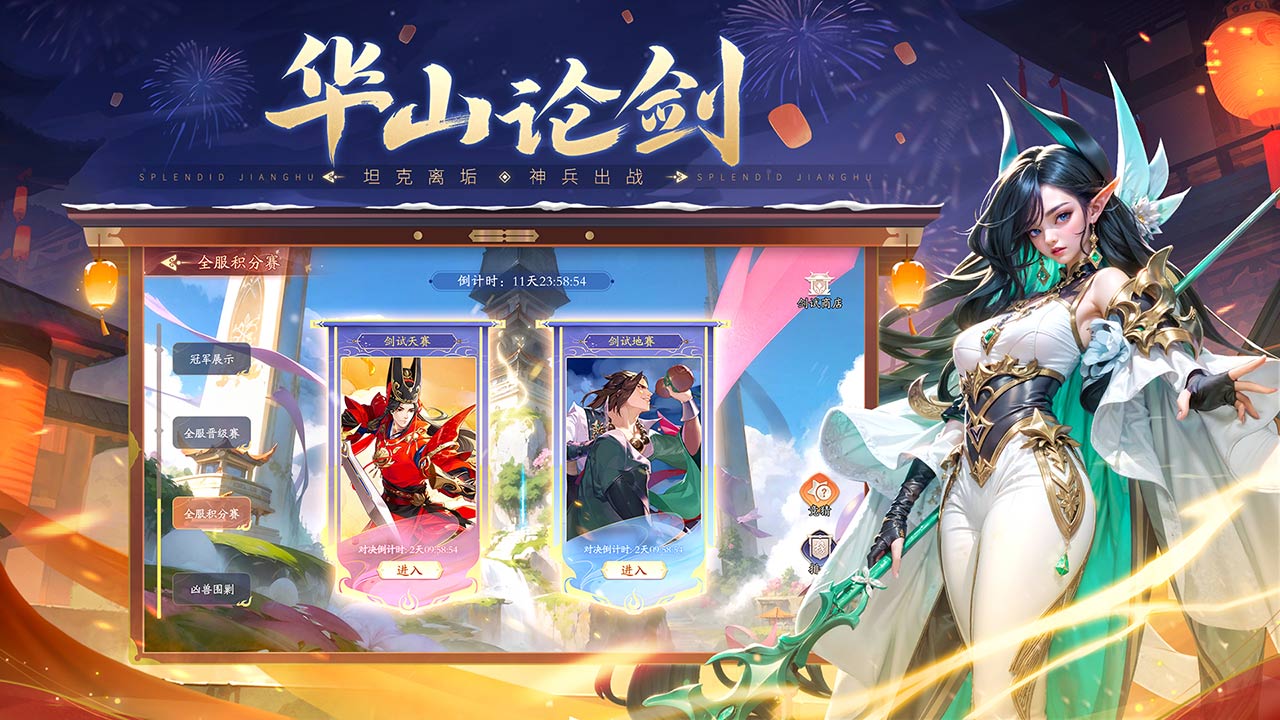 「华山论剑」全服挑战,三轮赛季玩法,战力组合多重考验,总决赛赢取豪礼。