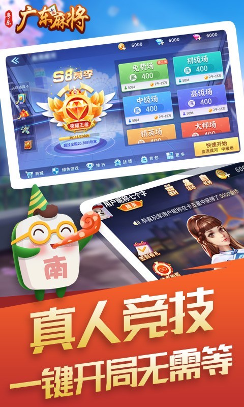 【手机端软件,需要安装游戏助手运行】 粤乐广东麻将是广东人都爱玩的一款麻将,采用当地传统的游戏玩法,规则简单易上手,游戏中玩法众多,除休闲房间外,还有竞技的金币房间,男女老少皆宜,奖励丰富机惊喜不断,快来体验吧!