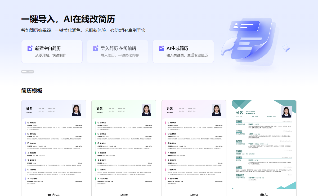 搭载认知智能的 AI 简历生成器,重新定义人才与机会的匹配逻辑。我们不做简单的模板替换,而是通过行业领先的自然语言处理、知识图谱和行为预测算法,为每位用户打造 "会呼吸的数字名片"。