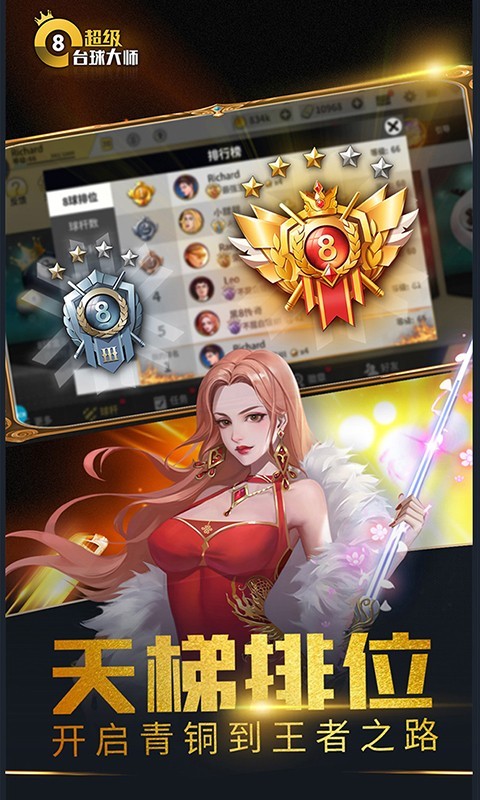 经典的黑8对决,让紧张刺激的桌球活跃指尖!独特的单机和联机玩法,可以更大程度地让你体会台球竞技的刺激和球技提升的快乐。酷炫而又强大的球杆,是您在游戏中叱咤风云的法宝。