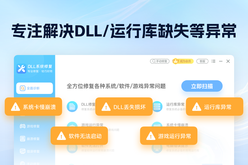 DLL系统修复是一款专业的计算机维护工具,旨在帮助用户快速解决因缺失或损坏的DLL文件而导致的各种系统问题。该软件具有友好的用户界面,操作简便,适合所有级别的用户。 主要功能: 自动扫描: 自动检测系统中缺失或损坏的DLL文件,并提供详细报告,帮助用户了解问题所在。 快速修复: 一键修复功能,让用户轻松恢复DLL文件,快速恢复系统正常运行。 备份与恢复: 提供文件备份和恢复选项,确保用户在修复过程中数据安全。 系统优化: 优化系统性能,提升计算机运行速度,减少错误和崩溃现象。 定期更新: 持续更新DLL文件库,确保用户获得最新的修复工具。 DLL系统修复是您解决系统问题、提升计算机性能的理想选择。无论是游戏、应用程序的运行问题,还是系统崩溃的烦恼,DLL系统修复都能帮助您轻松应对,恢复系统的稳定性和高效性。