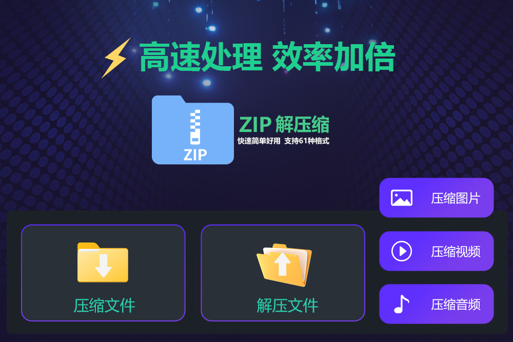 57Zip解压缩,是一款纯净无广告且非常好用的解压缩工具,除了常见的文件压缩跟解压缩外,针对图片压缩,视频压缩,音频压缩,GIF压缩,PDF压缩,WORD压缩,PPT压缩,EXCEL压缩8大文件类型优化了压缩算法,大大提升特定格式的压缩效率跟压缩比,满足不同需求场景。软件支持解压的格式有zip、rar、7z、tar、wim、bz2、g2、xz等多种压缩包格式的解压;同时针对文件、图片、视频、音频、PDF以及日常办公文档等支持打包成多种格式,例如常见的zip、7z等主流格式,不仅节约的磁盘空间,而且做到教据备份目的,压缩包支持设置密码,以及密码跨设备同步,方便安全,带来了非常高效便捷的使用体验,提升工作效率