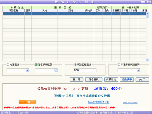 一款查询公交时刻的单机版软件,纯绿色,无需安装,直接可以执行。公布了3个城市的数据,分别是北京、上海、深圳,其它城市的公交数据会陆续发布。