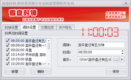 漂亮豪华的桌面悬浮时钟,是骨灰级期货、权证和外汇炒单玩家必备软件。使用看盘时钟软件能更精确把握开平仓时间,全语音时间提示避免因平仓不及时造成损失。 附赠各大期货公司交易日历,提示各品种后交易日及新合约挂牌上市、保证金变动等等各种相关信息。