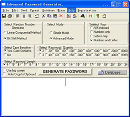 AdvancedPasswordGenerator是一个能够给你的机器几乎保护的软件,它一次产生40个由2个到20个字符的口令,只要你喜欢,这个程序绝对会给你产生出几乎不可能被破解的口令。