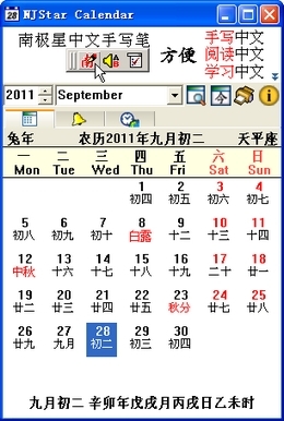 南极星万年历(NJStar Chinese Calendar)免费版为您提供详尽的农历信息,包括基本的农历阳历对照、农历传统节日、24节气,还有十二生肖、每月星座等趣味资讯。
