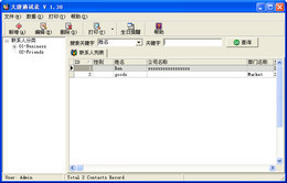 大唐通讯录是一个小型简洁实用的通讯录管理程序,使用简单,界面美观大方。可以管理自己的亲朋好友、同学同事、业务客户等的通讯资料,能直接建立分类,如同学类、朋友类、同事类等任意的分类项目。启动时需要输入密码,使其它人不能看到你的通讯资料,让你的信息更安全。查询栏让你很快找到你的联系人。