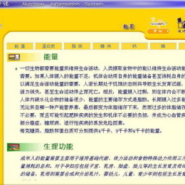 系统包括一套完整的营养数据库,不但包括各种营养素(钙、铁、锌、硒等微量元素,叶酸、烟酸、VC、VD、VE等维生素,蛋白质、脂类、糖类等)的生理功能指标、营养评价方法、食补的指南、参考摄入量标准和摄食过量标准,而且提供多达1600种常用食物的营养素含量、氨基酸含量和胆固醇含量数据库。 完善的营养全书系统为您展现了一本完善的营养全书,它涵盖了关于营养素所有您所希望了解的知识。包括各种营养素的各种生理功能、缺乏所导致的症状、过量摄入的毒性、各种生化指标、膳食参考摄入量、食物分布及主要食物来源。 丰富的食物列表系统包含一套完善的营养食物列表数据库,灵活多样的查询方式使所有帮助您查询所有食物成分。包含1600多种常用食物的各种营养素含量列表,常用食物的各种氨基酸含量列表,常用食物的胆固醇含量列表,各种营养素的推荐摄入量标准。 完善的专家支持系统的技术支持由营养监测研究中心的专家承担,同时感谢营养学会的鼎力支持。