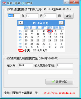 星期计算器用于快速显示一年中第几个星期的日期,也可以根据日期计算属于该年第几个星期。以周日为每周第一天。