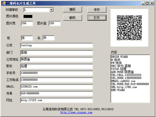 一款好用的绿色、操作简单的名片二维码生成工具。不仅可以生成二维码,还可以对已有的二维码进行解码。