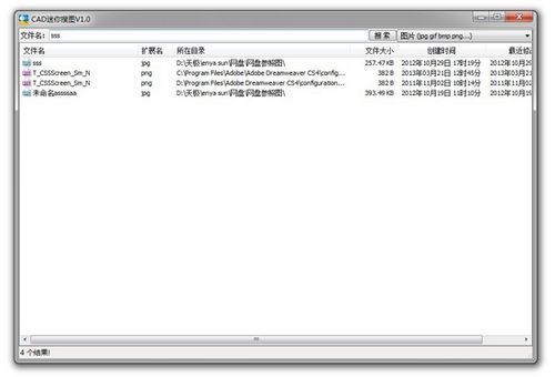 极速搜图纸小工具!一瞬间即可搜索到本机所有的DWG图纸,还能单独搜索文档、图片、音乐视频~,仅需几秒的索引全盘文件之后,精准显示搜索结果堪称毫秒级别!就是这么快!支持WinXP/Win7,其小巧,极速的特点将Windows 本身的搜索远远抛在后面。