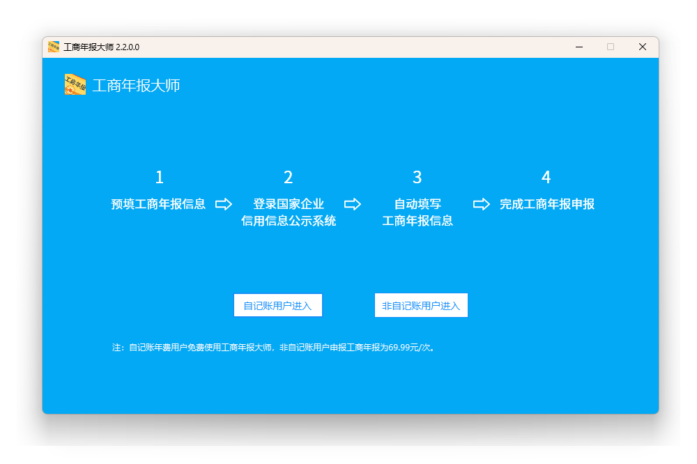 注:本软件对自记账年费用户免费,其他用户会收取69元填报费用,所有企业都可以用这款软件申报。会有客服协助,确保您申报通过。