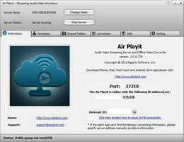 Air Playit 支持 iOS 与 Android,能将320种不同的视频和音频文件通过 Wi-Fi、3G网络远程无线地传送到你的 iPhone、iPad 或是安卓手机上面去并直接流畅地实时播放,无需等待!它能让你的电脑变成一个云端服务器,你不再需要麻烦地去转换视频格式,也不必麻烦地去拷贝文件,当然也不需再占用你手机宝贵的空间了。甚至它还能帮你离线转换视频格式并下载保存到你的移动设备,供你出外无网络时也能观看。