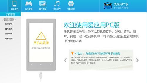 爱应用PC版正式升级到4.7啦,支持安装WP8.1软件游戏的手机助手,更开通了WP8.1专区,我的世界免费玩不是梦!支持Win7下连接解锁部署管理WP8/8.1手机,内置多款WP8/8.1专属游戏大作免费玩,而且每天都有新更新!!!我们一直在努力~~