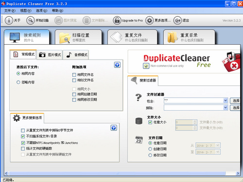 一个不错的文件清理工具,可以轻松清除电脑上的重复文件。它可以同时搜索多个文件夹,支持按文件名称、大小和时间进行搜索。