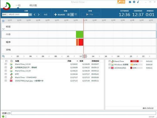 一天当中大部分时间都在与电脑为伴,那当你静下来的时候是否真正思考过,这一天到底用电脑做了些什么?是否只是沉迷于某个游戏荒废了一天或者只忙于工作,没有时间放松一下。是时候具体分析一下了,而ManicTime 很适合来帮你完成这份工作,它会静静地在后台记住你的电脑操作记录,然后生成直观的图表,来帮助你总结和分析到底大部分时间花费在哪些操作或者具体哪个程序上。让你更了解自我,以便更有计划的工作和生活。