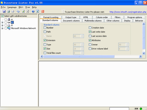 小巧的文件列表创建工具,提供文本和网页输出方式。可选择目录名、目录大小、目录的文件数、子目录、文件序号、文件路径、文件名、扩展名、大小、日期、时间、文件版本、CRC32校验、属性等信息在列表中的显示与否。