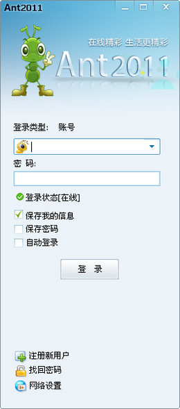 蚁傲2011即时通讯软件是公司核心产品,为用户提供网上做生意、结商友的交流工具,用户不仅可以通过它实现产品展示、企业推广、在线洽谈、身份认证等多种功能,更可以获得多重商机,获得生意上的成功。 蚁傲2011即时通讯软件,集成了即时的文字、语音、视频沟通、以及交易提醒、快捷通道等功能,是网上交易必备的工具。为了保证用户使用上的习惯,操作和界面风格完全模仿的QQ2011效果。