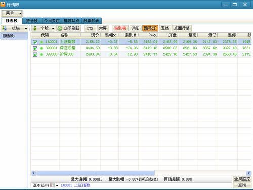 股票行情数据实时查看工具。“行情眼”是杰思达工作室开发的,具有行情查看、报警功能,支持声音、弹出窗口、托盘动画三种方式,从此解放您的双眼,不必再时刻紧盯电脑屏幕。