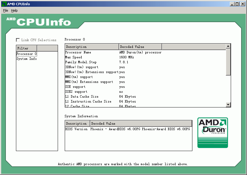 AMD官方出品一款处理器信息检测工具。具体支持Phenom、Athlon 64 FX、Athlon 64 X2、Athlon Dual-Core、Athlon Single-Core、Sempron等AMD全系处理器产品。