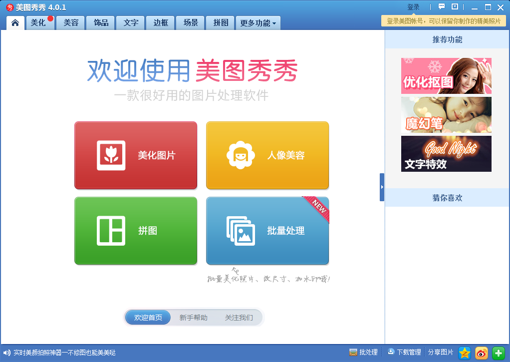 界面简洁:美图秀秀的用户界面设计简单直观,即使是没有图像编辑经验的用户也能快速上手。