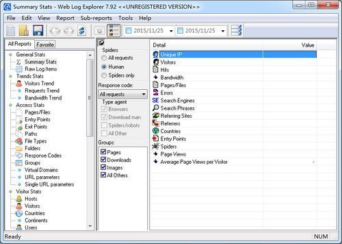 Web Log Explorer 可以统计分析 Apache、IIS 网站主机的 .log 纪录文件,能够将多种关于网站浏览者的统计资料彻底解析,包括:参观人次、动态状况、文件存取状态、参照网页、搜寻引擎、错误、来访者国家、网站搜寻字符串/词组等等。