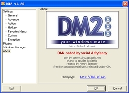 DialogMate提供四个帮助日常工作的视窗增强功能。1.用它你可以小化窗口为悬浮图标(独特功能)以释放任务栏和托盘的空间;2.集成到标题栏的小图标及窗口小化及还原按钮,只需右击就能小化窗口到托盘或桌面,可使县浮图标置顶及修改图标的不透明度;3.还能快速地在打开/保存对话框中切换到经常要用到的文件夹,支持文件夹分组功能;4.能快速恢复所有窗口及提供窗口缩略图。