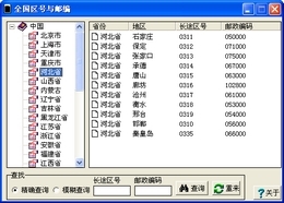 查询全国各省的电话区号与邮编,支持模糊查询,绿色且免费。