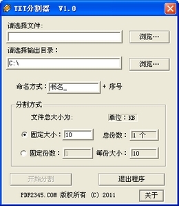 小丑鱼推出的txt文本分割软件,它能帮助你将打开困难的超大txt电子书分割成若干小txt文件。能够按照固定txt大小或者固定份数来分割txt文件。