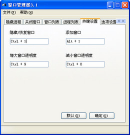 窗口管理器是一个功能强大的窗口管理工具,可以设置隐藏多个窗口,可以自动关闭窗口,默认隐藏热键为Ctrl + 1,添加当前工作窗口到隐藏列表的热为Alt + 1,你也可以自定义热键,还可以修改窗口标题等功能!同时增加了隐藏某进程打开的所有窗口,比如在隐藏进程加入“QQ.exe”,就可以隐藏QQ打开的所有窗口,并在系统托盘栏的图标也一并隐藏。