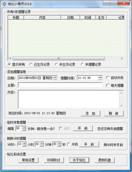 一款功能比较齐全的时间管理软件,特别是一些电脑闹钟软件常见的小功能基本上都已经配备了。