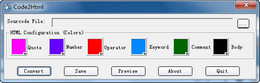 Code2Html是一个实用的小工具,利用它您可以将c/c++源代码转换为html格式文本,您可以按您的习惯调整各种元素的颜色,如:关键字、操作符、数字等。