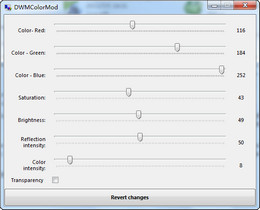 DWMColorMod是专门用来调整Windows 7 Aero参数的小程序,你可以轻松地配置红,绿,蓝的色彩强度,以及其他参数,如饱和度或亮度。还可以选择反射和颜色强度,以及透明度。