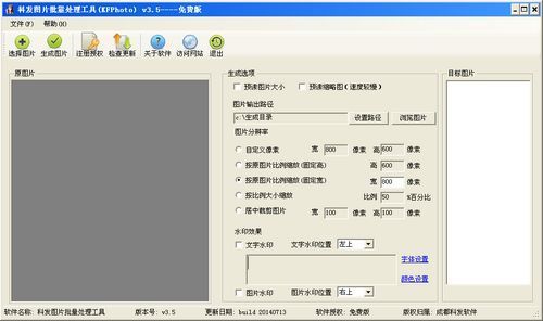 科发图片批量处理工具可用于批量处理图片分辨率大小、加文字水印、加图片水印。可根据各种分辨率需求进行批量处理。文字水印自动分行,文字水印字体、大小设置。