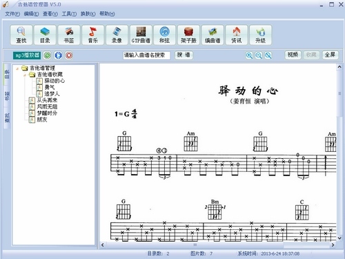 吉他谱管理器是一款免费的吉他谱搜索、浏览、收藏管理等吉他学习辅助工具,软件以直接搜索下载曲谱,树状目录结构收藏,同步吉他视频搜索,自动播放曲谱打节拍,吉他和弦大全演示,架子鼓练习,支持GTP谱管理,简易六线谱简谱制作等等功能而深受广大吉他爱好者欢迎。